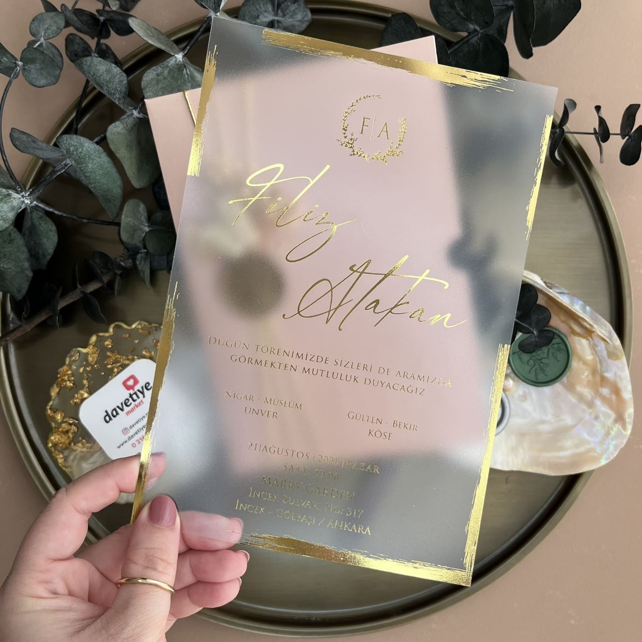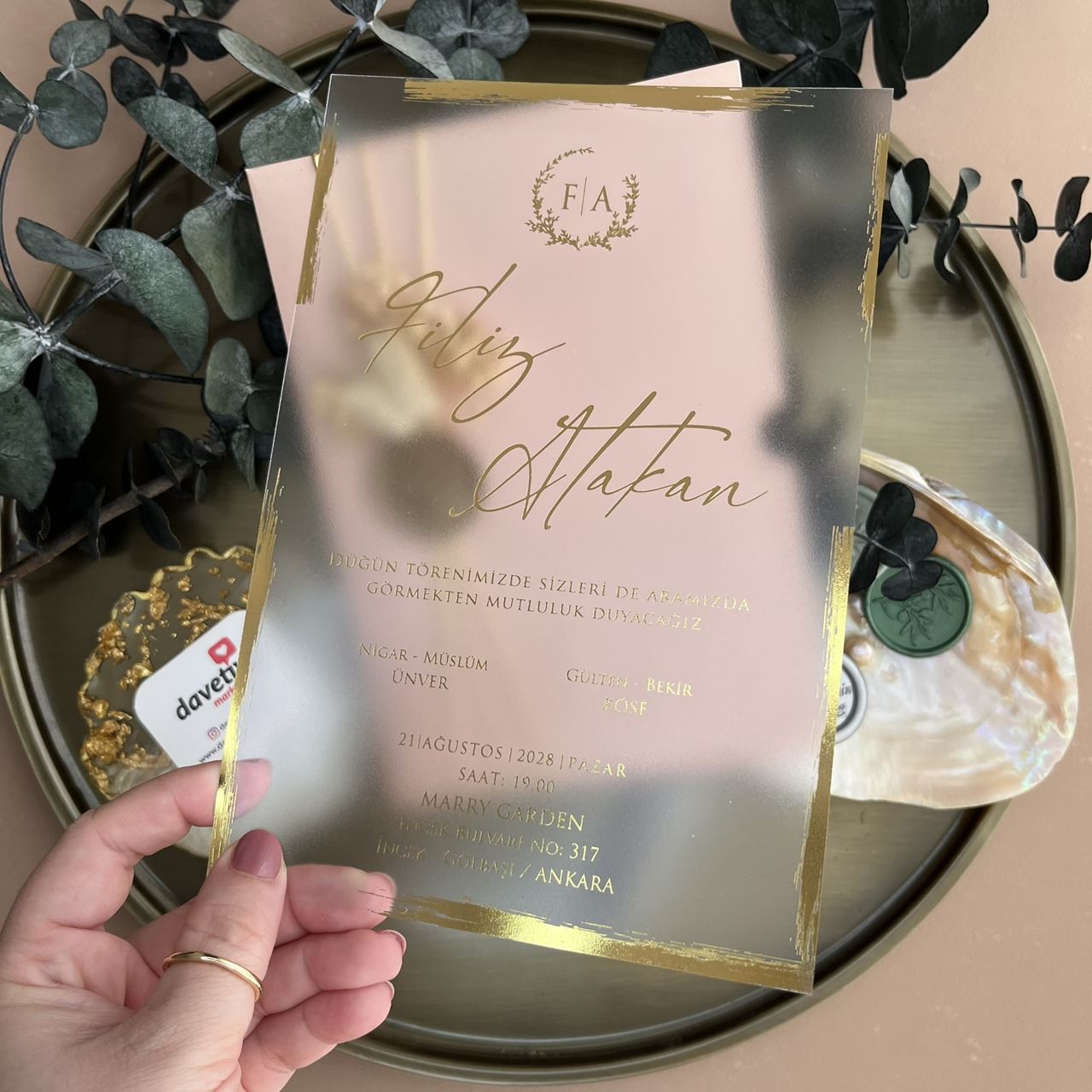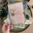 Bring nature-inspired luxury to your wedding with this bohemian-style acrylic invitation, featuring a translucent matte finish, elegant gold foil text, and a botanical arrangement of dried flowers, gold twine, and a Tree of Life wax seal. A perfect fusion of modern and organic design.