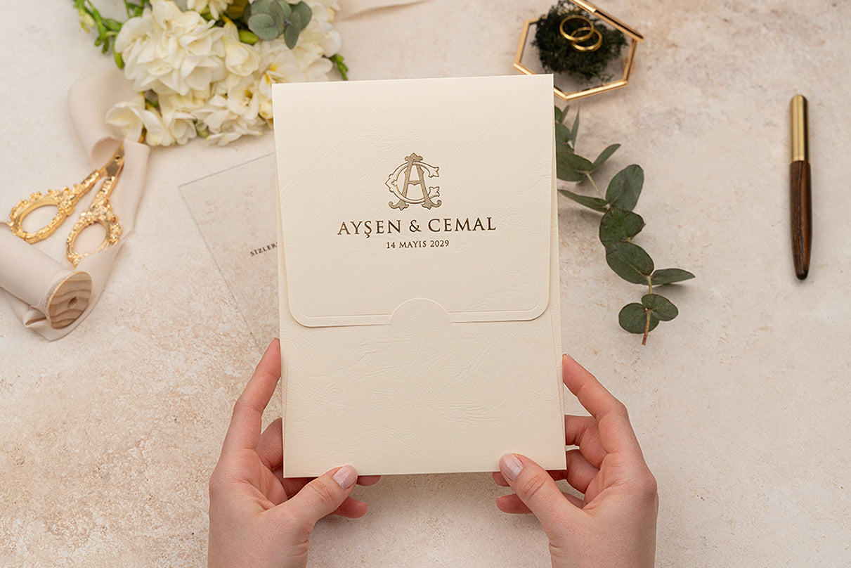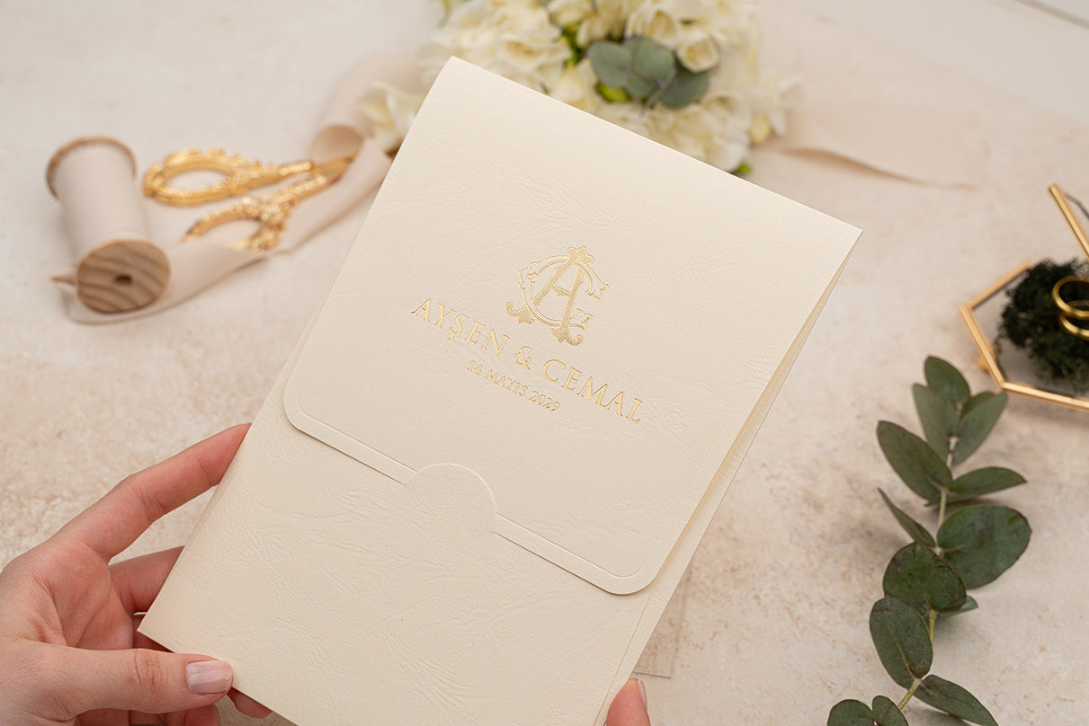 Comes with a smooth cream envelope featuring a coordinating gold crest, delivering a cohesive, premium first impression.