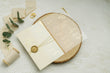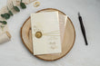 Cream Folded Wedding Invitation with Gold Seal & Clear Acrylic Insert