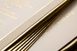 ✨ A graceful cream-colored wedding invitation featuring exquisite gold foil details. The cover showcases a delicate monogram encircled by a laurel motif, while the inner card is bordered with gold lines and embossed with matching calligraphy. The minimal and noble style makes it a perfect choice for elegant and traditional weddings.