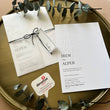 Envelope: Semi-transparent vellum cover, tied with a black string bow and elegant tag