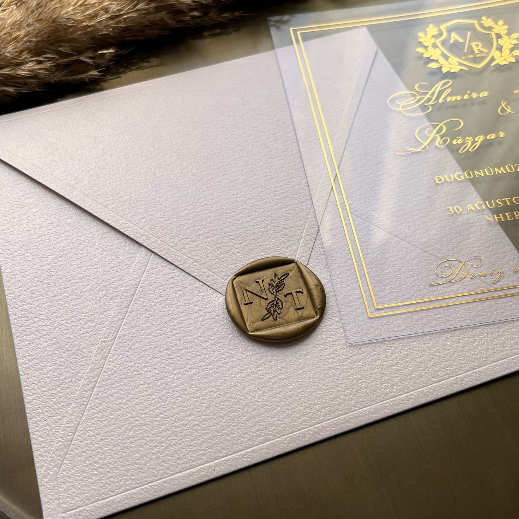 Gold Lettering Acrylic Wedding Invitation with White Envelope and Wax Seal