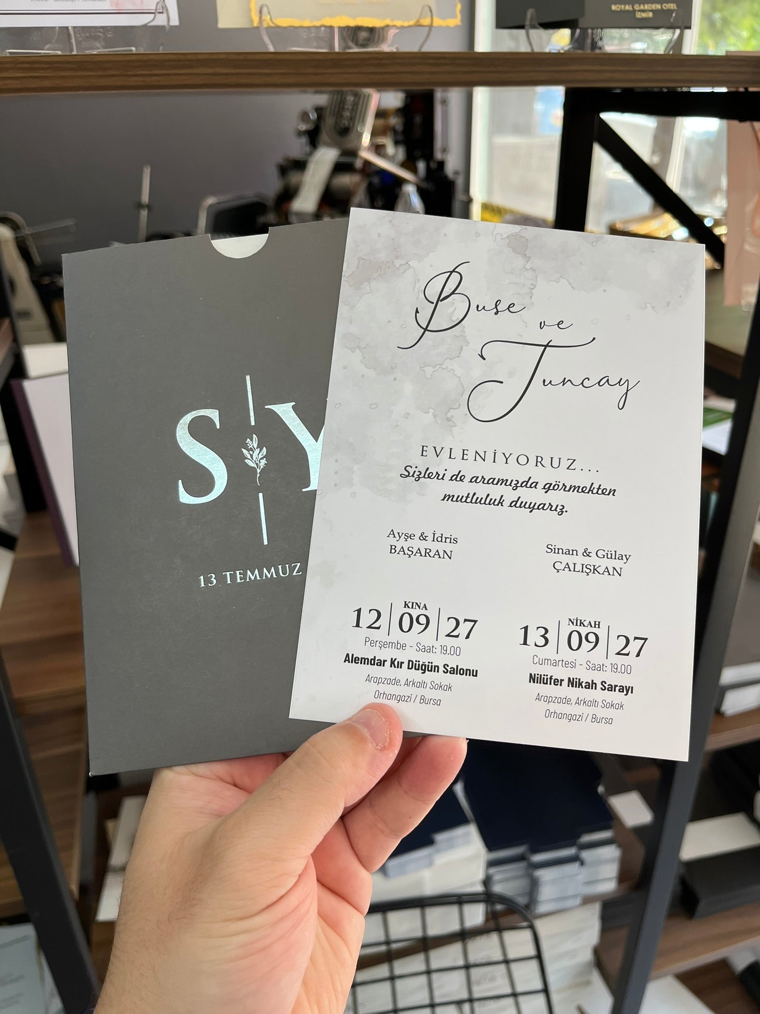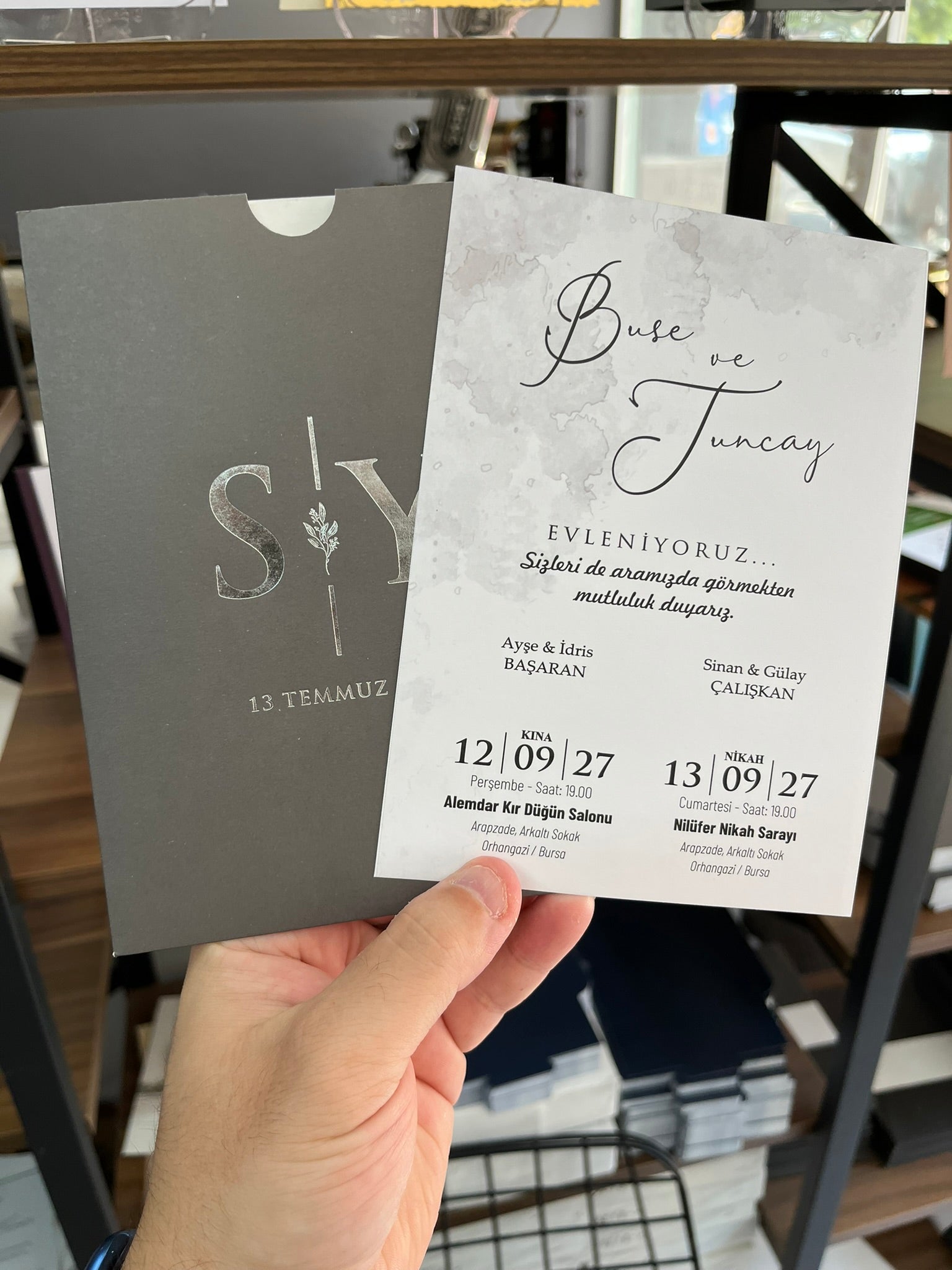 Included: 1 gray sleeve + 1 marble-printed invitation card