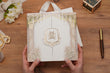 Ivory & Gold Wedding Invitation with Classical Floral Gatefold