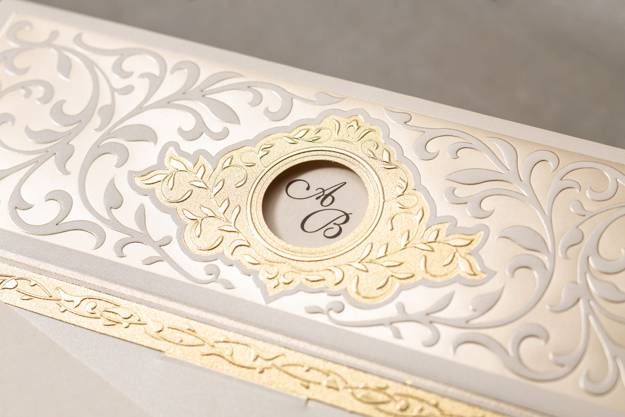 Ivory Regal Wedding Invitation with Gold Foil Embossed Frame