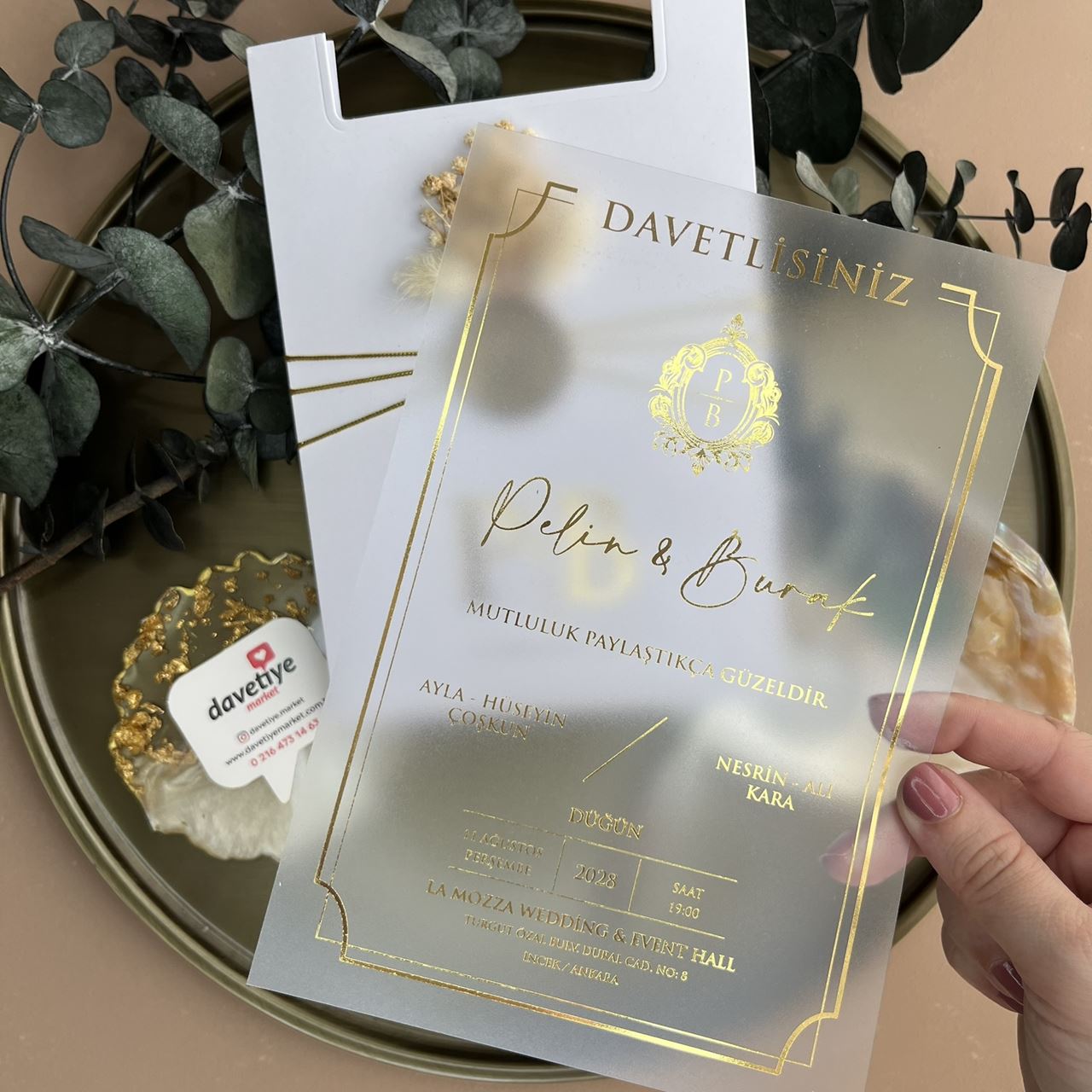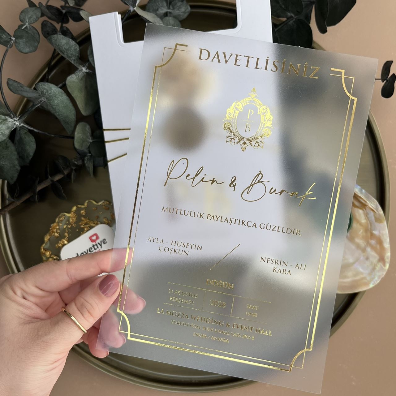Luxury Transparent Acrylic Wedding Invitation with Gold Foil & Dried Flowers