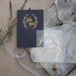 Luxury Transparent Acrylic Wedding Invitation with Gold Foil Wreath