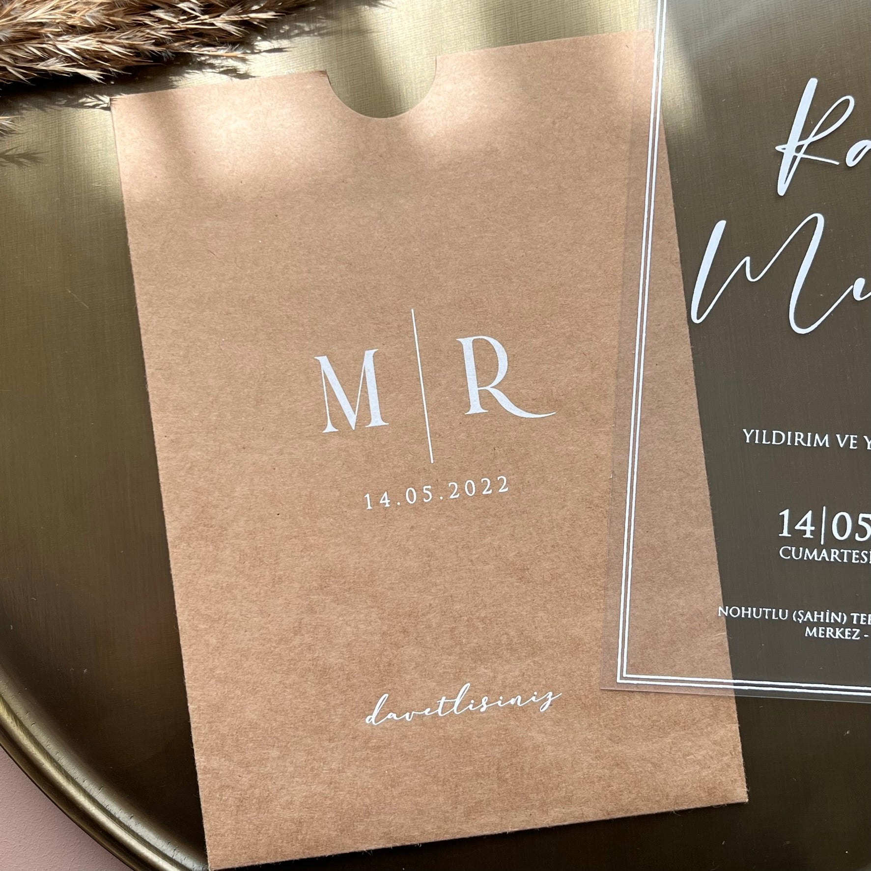 Minimalist Acrylic Wedding Invitation with Kraft Sleeve