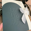 Minimalist Save the Date Invitation with Embossed Date & Silk Ribbon