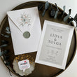 Minimalist Wedding Invitation with Botanical Envelope & Wax Seal