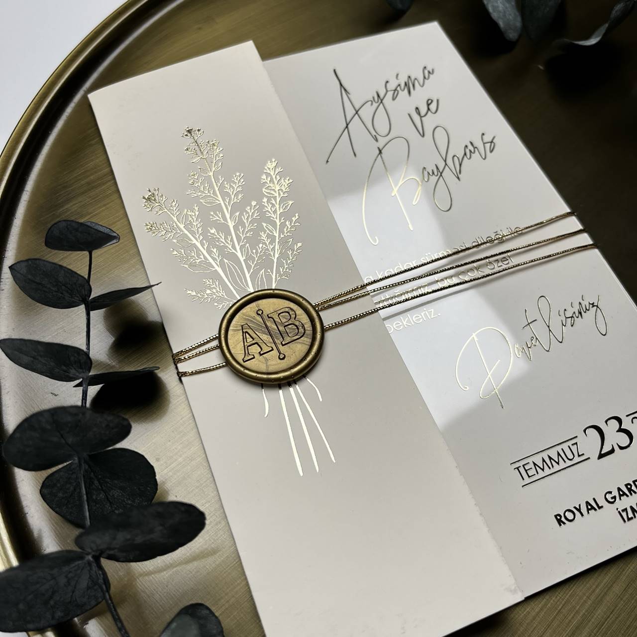 Modern Acrylic Wedding Invitation with Gold Foil & Wax Seal