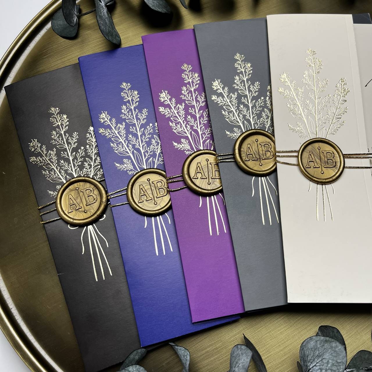 Custom gold wax seal with initials (A β₯ B shown as sample)