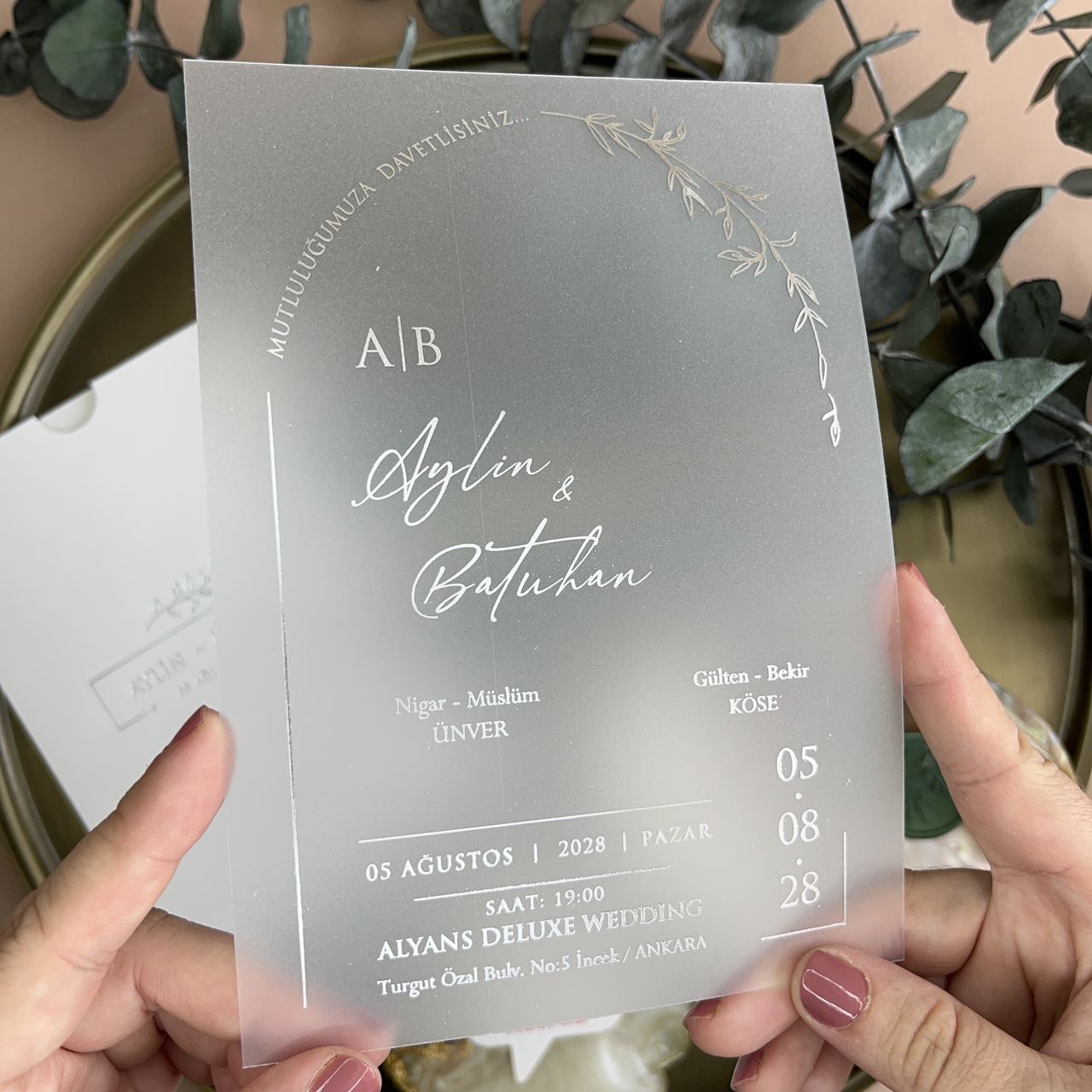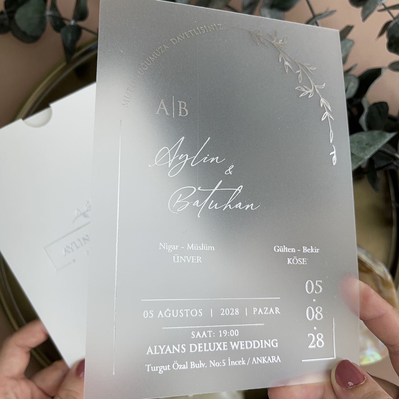 Make your wedding unforgettable from the very first impression. Our Modern Frosted Acrylic Wedding Invitation featuring the names "Aylin & Batuhan" is a perfect blend of elegance, simplicity, and modern design — crafted for couples who value sophistication and style.