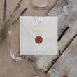 The coordinating envelope is sealed with a custom wax stamp, making the entire experience tactile and premium. Ideal for couples looking for a timeless design with subtle botanical elements.