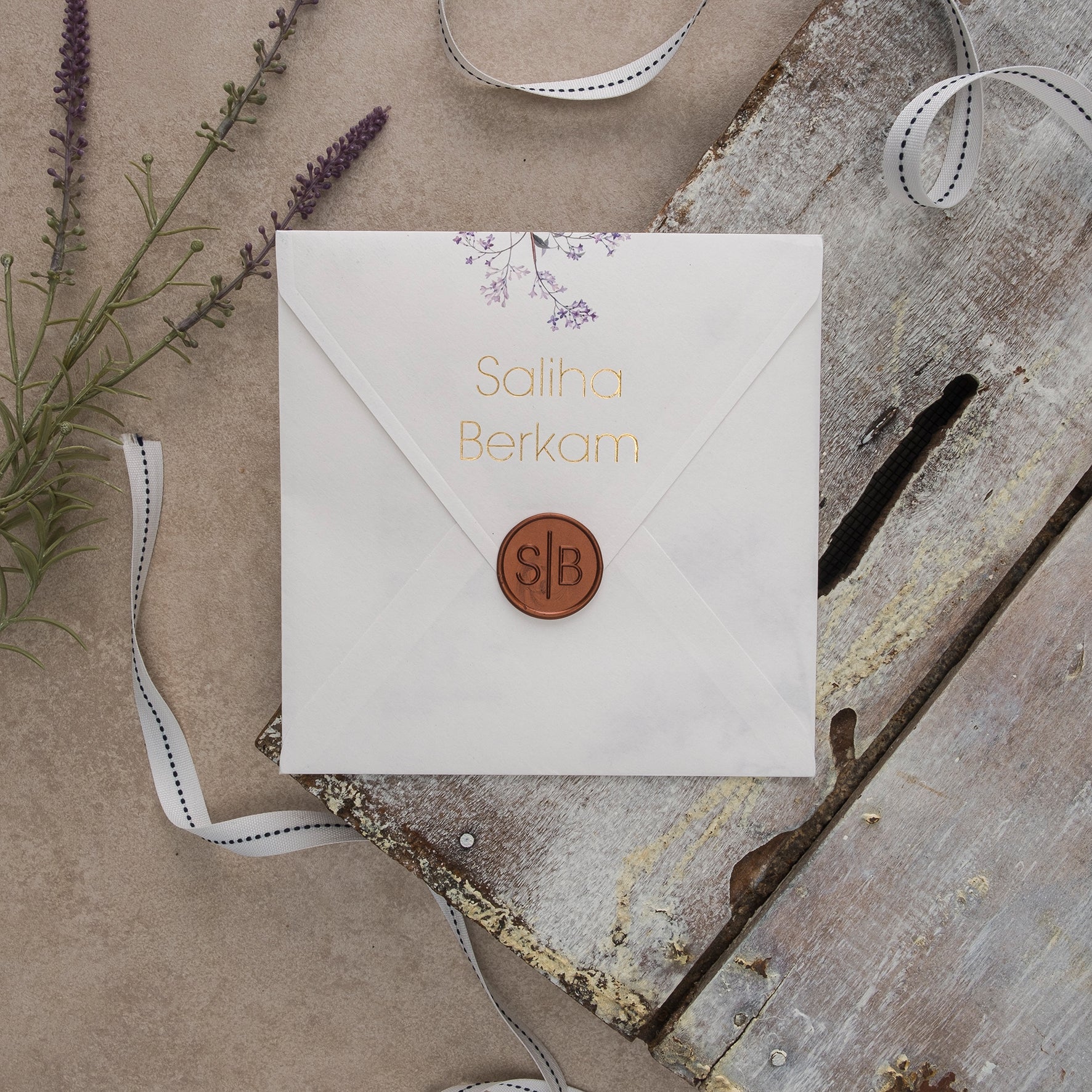 Modern Wedding Invitation with Lavender Detail & Wax Seal