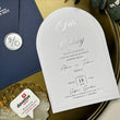 Navy Blue & White Arched Wedding Invitation with Silver Foil