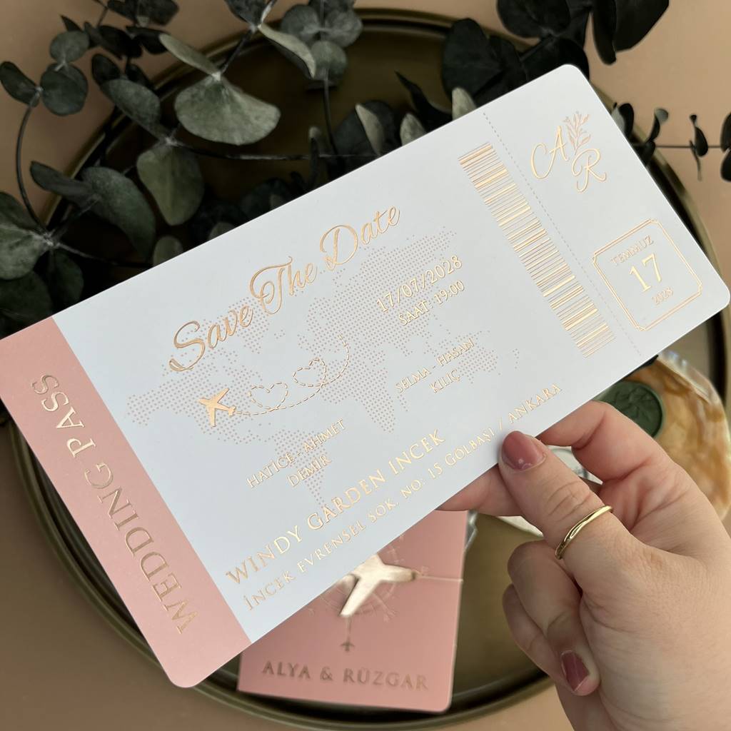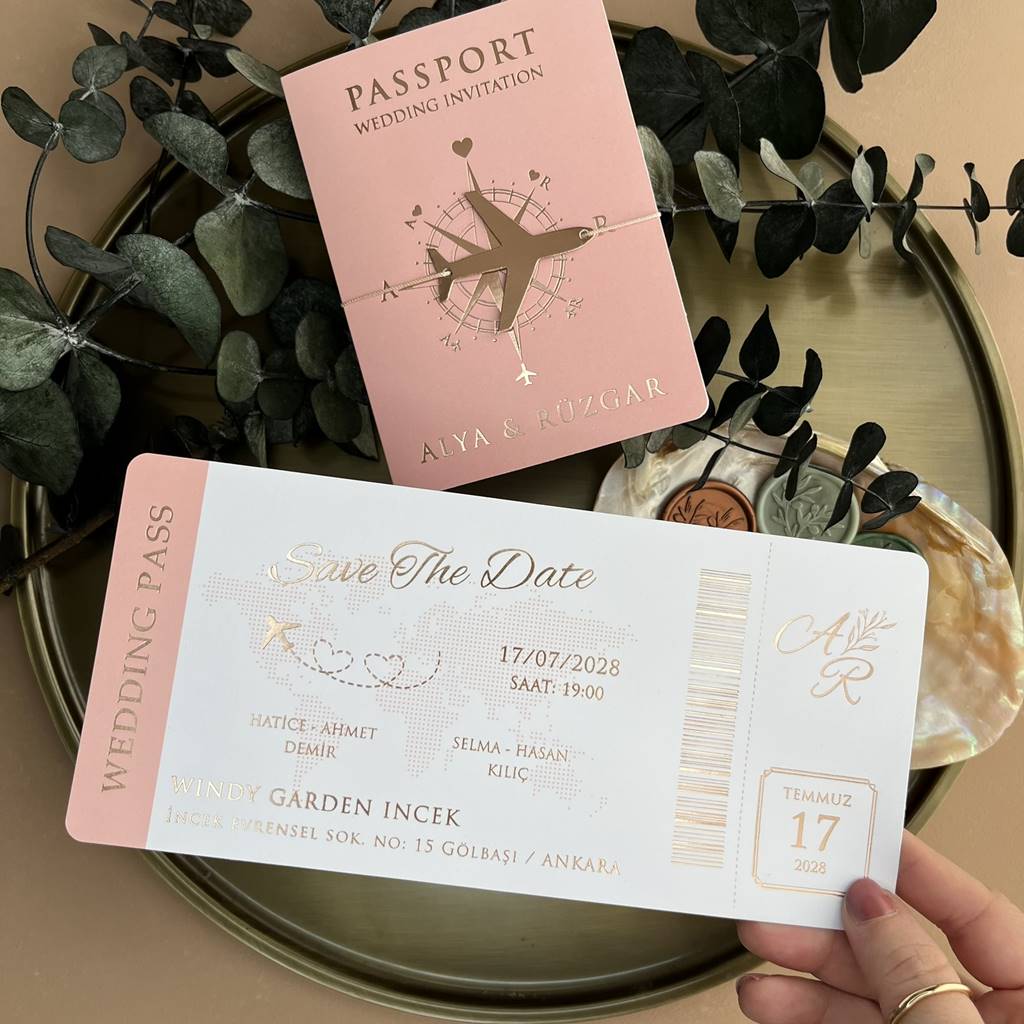Includes a detachable “Wedding Pass” card (boarding pass style)