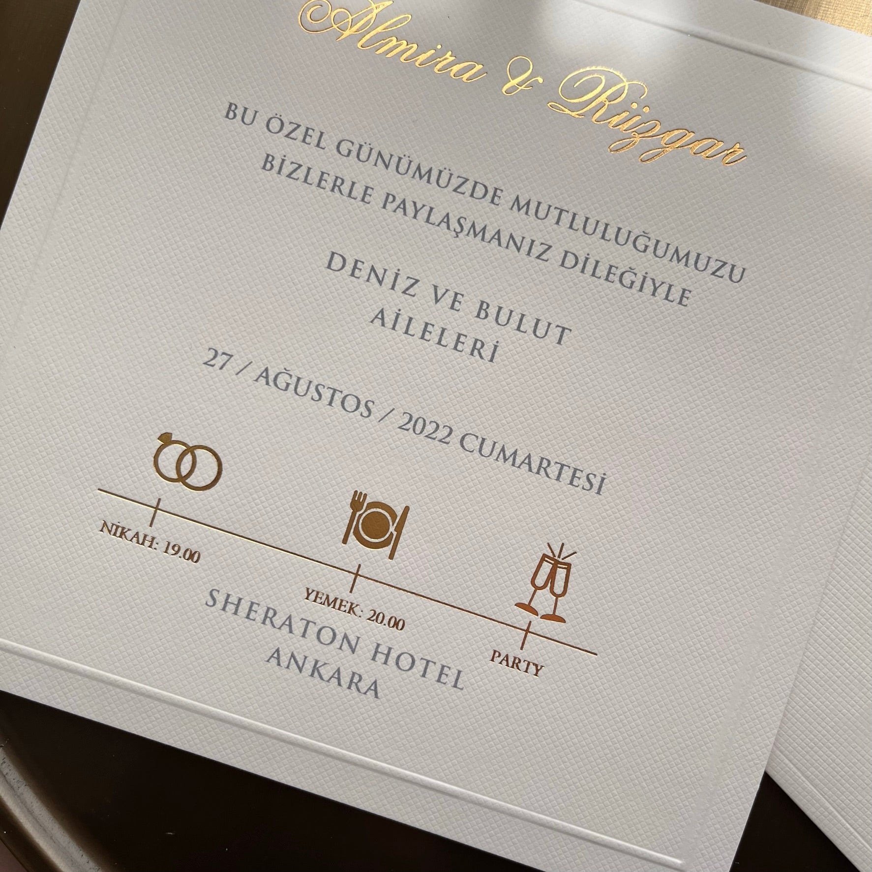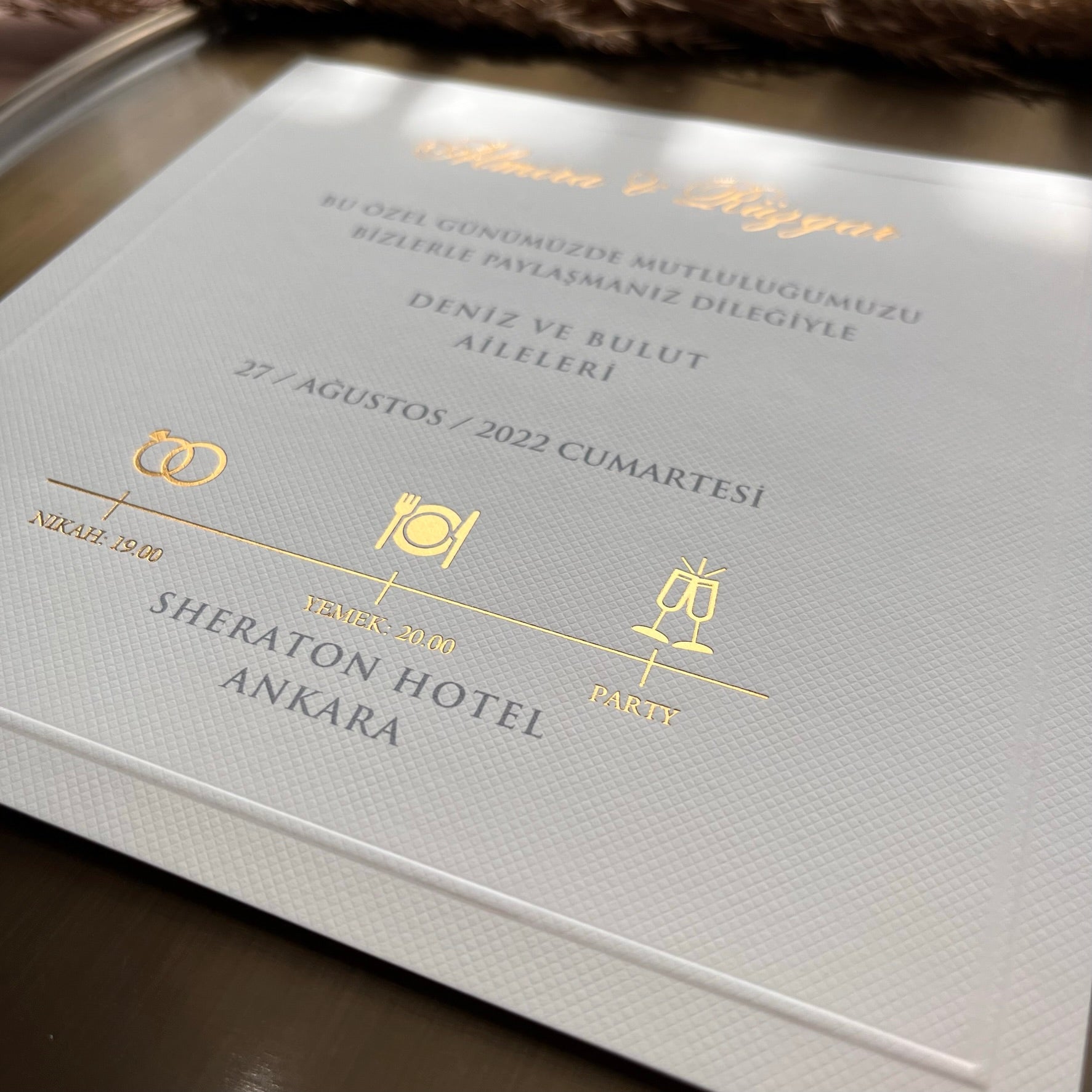 π« Design Elements: Gold icons for ceremony, dinner, and party