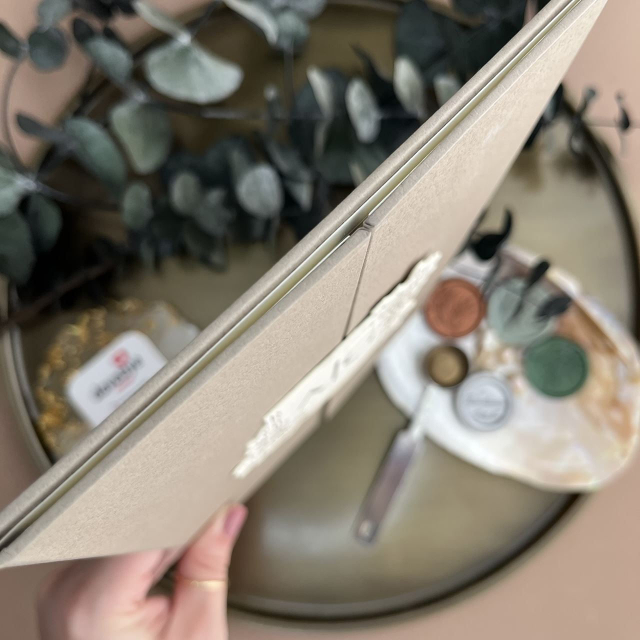A refined take on luxury β this thick gatefold invitation in warm taupe tones is crafted for couples who want elegance with a soft touch.
