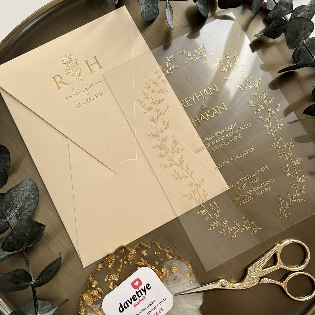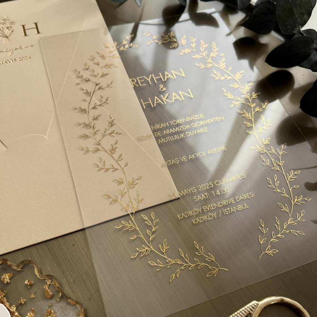 Transparent Acrylic Wedding Invitation with Gold Foil | Elegant Botanical Design